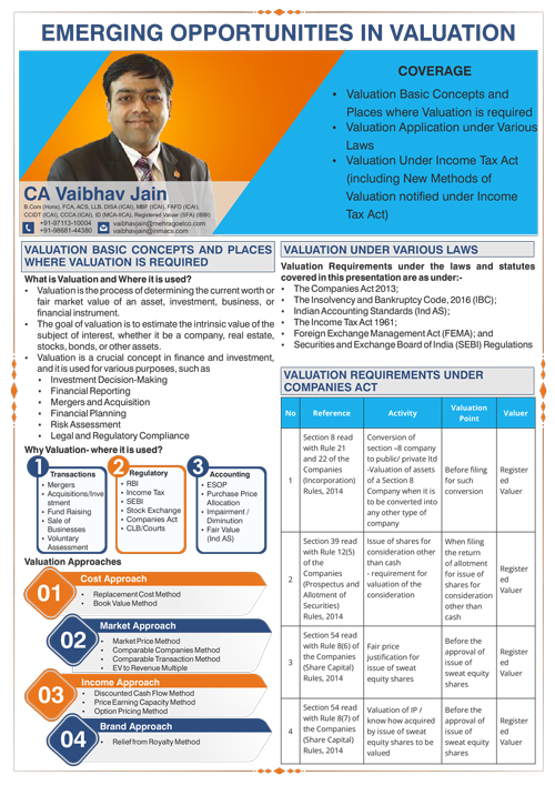 Emerging Opportunities – Valuation and Role of CAs